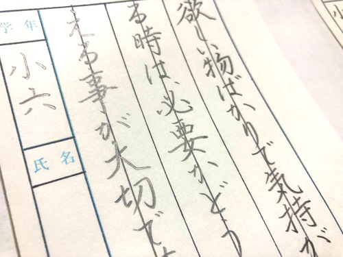 さて子どもの硬筆講座、今月は昇級試験がある硬筆。受ける子は二つの課題を書かなければなりません。