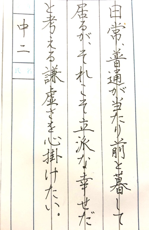 中学生はペンや万年筆を使用します。筆圧というところを考え始めなければならない時期。